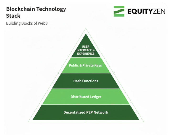 - Decentralized P2P Network: The foundational network of computers (nodes) that operate without a central authority. This creates a resilient system with no single point of failure.